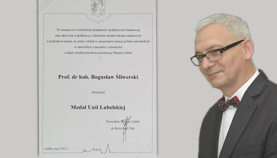 W uznaniu za wieloletnią działalność dydaktyczno-badawczą oraz aktywną współpracę z lubelskim środowiskiem naukowym z podziękowaniem za cenny wkład w umacnianie relacji polsko-ukraińskich w atmosferze szacunku i otwartości a także międzynarodową promocje Miasta Lublin dla Prof. dr hab. Bogusław Śliwerski otrzymuje Medal Unii Lubelskiej
