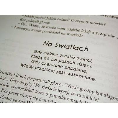 Na początku spis treści. Like! Krótkie opowiadania nie męczą dziecka, a książki nie trzeba czytać od razu całej. W każdym rozdziale wierszyki pouczające, pomagające a także rysunki. Nie są one kolorowe, co dla mnie jest plusem. Dziecko samo może je pokolorować jak tylko chce. A poza tym mają swój urok. Idealnie pasują do okładki książeczki. Pewnie czekacie jak się skończy książka. Ja Wam nie mogę zdradzić bo co to za frajda znać koniec bez czytania?