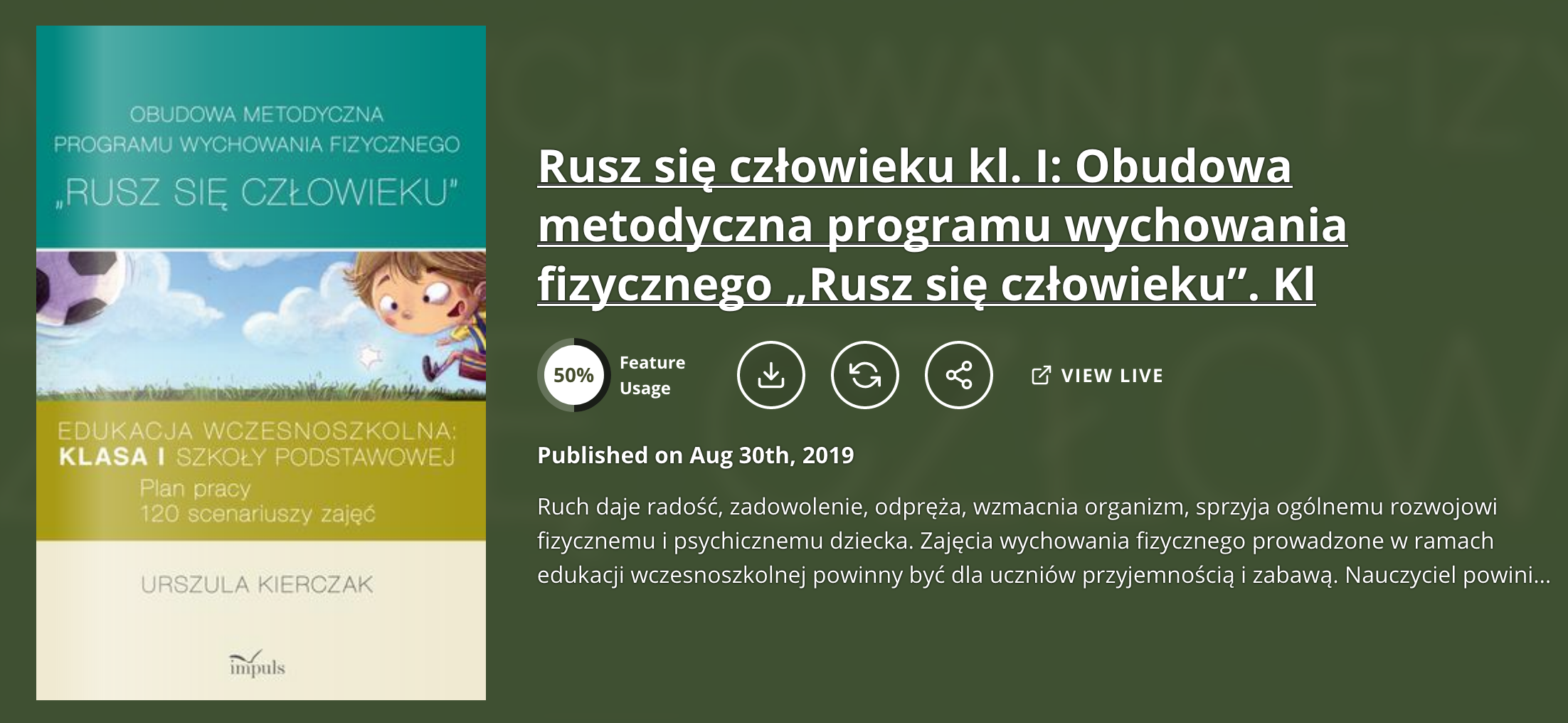Publikacja Rusz się człowieku pomoże sobie o nim przypomnieć, pomoże zadbać o jego realizację, ale też wesprze nauczyciela, by nie zagubił się w gąszczu edukacyjnych wymogów czy formalnych niuansów.